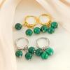 18K Gold Plated Stainless Steel Hoop Earrings for Women Vintage Green Natural Stone Charms Trendy Waterproof Jewelry