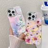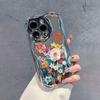 Krásný květinový potisk Lesklý zrcadlový povrch Kryt na telefon Pro iPhone 15 14 Pro 13 Pro Max 12 11 Vlnitý rám Měkké TPU Nárazuvzdorné Pouzdro Ochrana objektivu