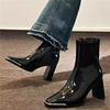 Short Boots Women's Shoes Winter Shoes New Square Headed Lacquer Leather Thick Heel Short Tube Slim High Heel Slim Boots