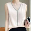 INDFS Women's Fashion Casual Summer Spring Solid Color Print Sleeveless V-Neck Blouses & Shirts