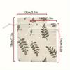 1Set/20pcs printed drawstring bag, holiday candy bag, Valentine's Day reusable jewelry bag, wedding party and DIY craft packaging (green leaf)