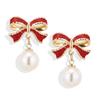 Trendy Black Red Bow Knot Drop Earrings for Women Enamel Oil Metal Imitation Pearl Dangle Earrings Wedding Party Sweet Jewelry