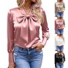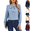 Spring and Autumn Temperament Shirt Lantern Long Sleeve Bowknot Collar Solid Colour Women's Shirt