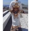 Women's Fashion Printed Dress Temperament Commuter Style V-Neck Long Sleeve Split Comfortable Dress Long Dress