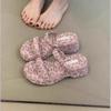 Wear summer high heels sandals toes new slippers leopard print herringbone female slope heel pink clip 2025