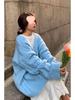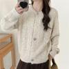 Women's Retro Blue Cable Knit Cardigan Sweater - Loose Fit, Autumn/Winter Outerwear, Lazy and Gentle Style.