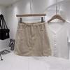 2024 Autumn Women's High-Waisted Corduroy A-Line Mini Skirt with Button, Slit, and Anti-Exposure Design - Korean Style Versatile Bodycon.