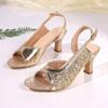 6cm Fish Mouth High Heel Sandals with Shallow Mouth with Large Size Round Toe High Heels Golden Rhinestone High Heels Summer Shoes