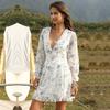Summer Women Casual Halter V-Neck Chiffon Mini Dress Ruffles Print Blue Green Pink White Full Sleeve Above Knee Sizes S XL