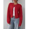VAYLA Basics Ležérní jednobarevný kulatý výstřih dlouhý rukáv volný zkrácený dámský svetr kardigan