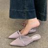 New Temperament Pointed Toe Shallow Silk and Satin Slippers Summer New Baotou Crystal One-band Soft-soled Low-heeled Shoes