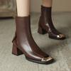 Women's Metal Tip Toe Ankle Boots Back Zipper Medium Block Heel Fashion Boots Sexy Short Barrel Rubber Sole Leisure Botas Mujer