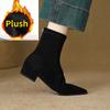 Dámské kozačky 2025 Zimní móda Špičatý design Krátké kozačky se zipy na zadní straně, Slim Nízký podpatek Nude kozačky
