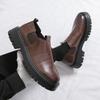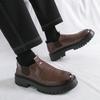 Fashion Loafers Men Casual Retro Le Fu Shoes Black Brown One-foot Thick-soled Anti-slip Height-increasing Brand Leather Shoes Size 38-46
