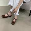 Fashion CRLAYDK Mules for Women Flats Leather Buckle Strip Slip On Ladies Square Toe Backless Loafers Ladies Dress Comfortable Shoes