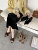 Pointed suede versatile fluffy slippers outer wear autumn and winter fashion to increase temperament girls slope heel one-word trend