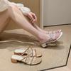Casual rhinestone butterfly sandals 2025 summer new fashionable versatile transparent thick heel fairy wind cool slippers