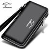 Men's Long Clutch Wallet with Multi-Card Slots, Phone Pocket, and Zippered Business Card Holder.