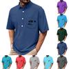 Men's Summer Solid Color Print Four-sided Stretch Lapel Button Pocket Shirt Casual Sports Short-sleeved Top