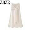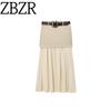 Za Autumn New Arrivals Women's Clothing Zr European and American Style Belted Suede Effect Pleated Midi Skirt 3046252 711