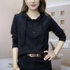 Autumn Thin Solid Color Versatile Long-sleeved T-shirt for Women's Sports Casual Hooded Sweatshirt Top