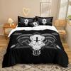 Cow Skull Duvet Cover Queen Sunflower Cattle/Bull Skeleton Bedding Set Botanical Floral Leaves Boho Tribal Polyester Quilt Cover