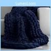 Blue Cozy Deep Handcrafted Blanket With Oversized Knit For Living Room And Decor Bedroom