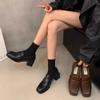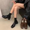 Black loafers square-headed lazy one-pedal thick high-heeled small leather shoes versatile French Mary Jane single shoes women's middle heel