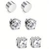 3 páry křišťálových silných magnetických klipů do ucha pro muže a ženy, punkové kulaté zirkonové magnetické náušnice, nepiercingové šperky