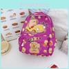 This children's backpack features durable nylon material . Designed to reduce weight and resist wear, it offers a comfortable fit with curved shoulder straps. Ideal for school use, it showcases playful cartoon prints and vibrant colors like purple, pink, and blue. Easy to clean with a damp cloth.