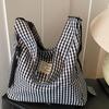 Japanese retro red plaid canvas bag women's 2025 new lazy wind commuter tote bag student shoulder armpit bag