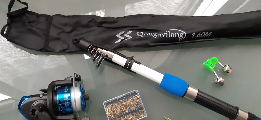 SOUGAYILANG Angelruten-Rollen-Set, Teleskop-Angelrute, Spinnrolle, Angelköder, Haken, Linie, Pol, Angelkombi