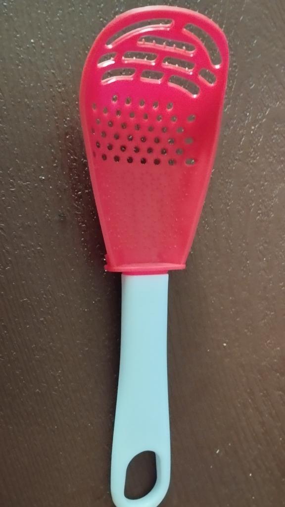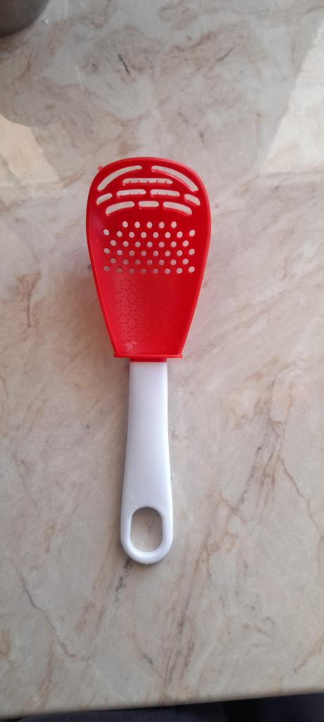 Very valuable, cleanly manufactured kitchen spoon. The spoon is made entirely of plastic. At the front it is not flexible like rubber, but also rigid. I think it is a very useful kitchen utensil that should not be missing in any kitchen. Would I buy again👍👌