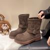 Women's Fashion Thick Heel Cotton Boots Winter New Round Head Suede Soft Sole Anti-slip Wear-resistant Short Boots