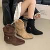 Fashion Winter Suede Women Ankle Boots Square Toe Retro Mid Heels Shoes 2025 Trend Designer Buckle Chunky Pumps Classic Botas De Mujer