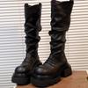 Cowhide Version Su Yinyin Boots Of The Same Style, Thick-Soled Thick-Heeled Pleated Medium And High Elastic Stacking Boots, Women'S Boots