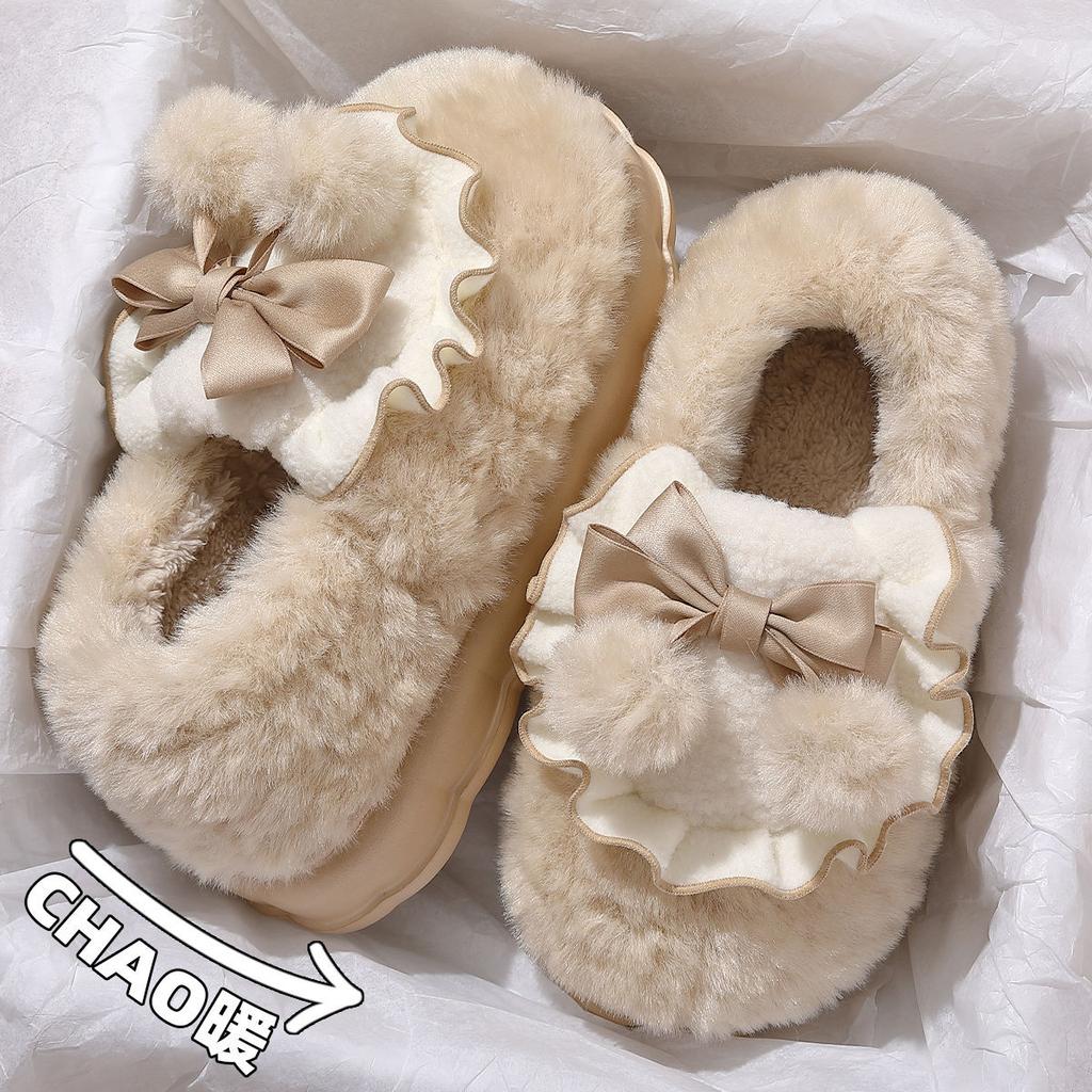 Cotton slippers women's winter new indoor non-slip household plush thick-soled thermal bag and cotton shoes women