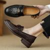 Leather camellia lazy loafers women's 2025 new autumn retro British one-pedal small leather shoes single shoe trend