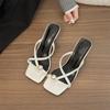 French high-heeled sandals women wear 2025 summer Internet celebrity super fire fairy style high-end sense pearl square head flip-flops