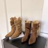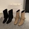 Short boots for women's autumn and winter new retro thin boots Martin boots thick heel pointed mid-tube boots wrinkled stacked boots for women