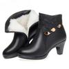 Fashion Women High Heels Soft Leather Ankle Boots Autumn Winter Plush Snow Boots Brand Fashion Point Toe Middle Heel Mom Cotton Shoes
