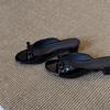 2025 new French patent leather black bow sandals women's versatile simple low-heeled casual open-toed slippers