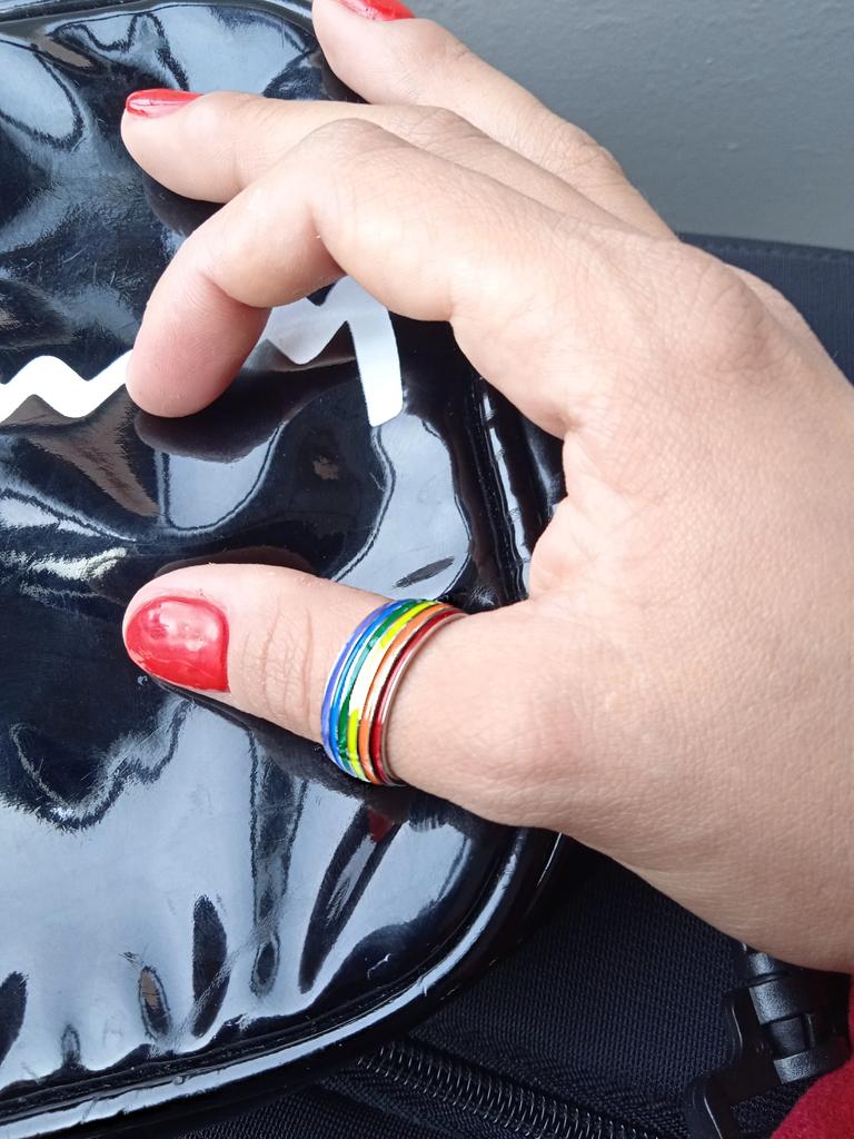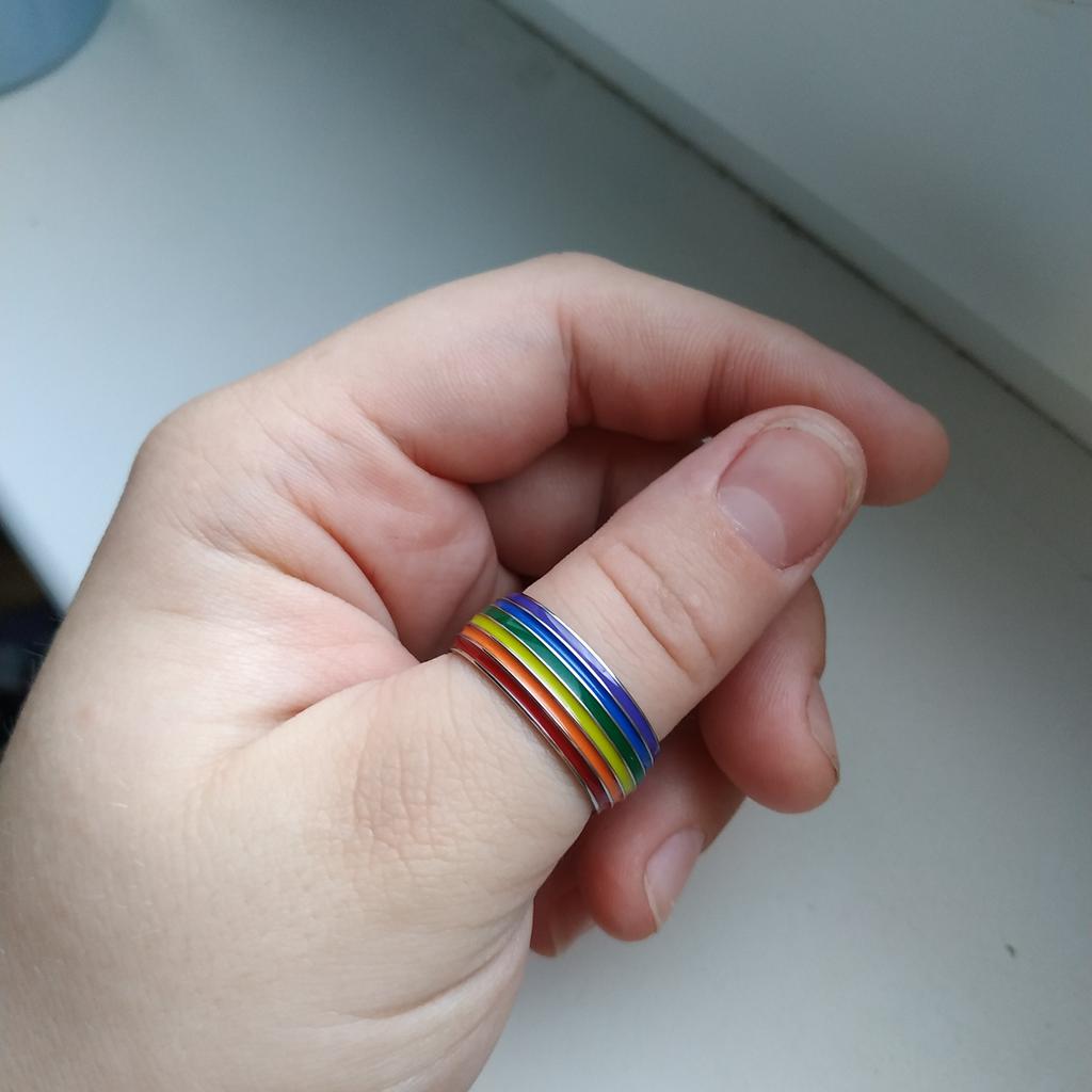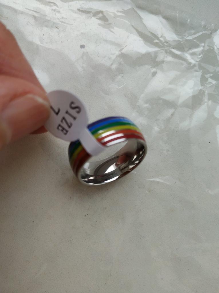 Well arrived....it was slightly longer...but still there 😉 It seems to be of good quality, remains to be seen over time...if the colors of the rainbow will stay like that...or if they will disappear like most jewelry from Joom, I fingers crossed 🤞🤞 Size 10...just barely, but pretty 😉