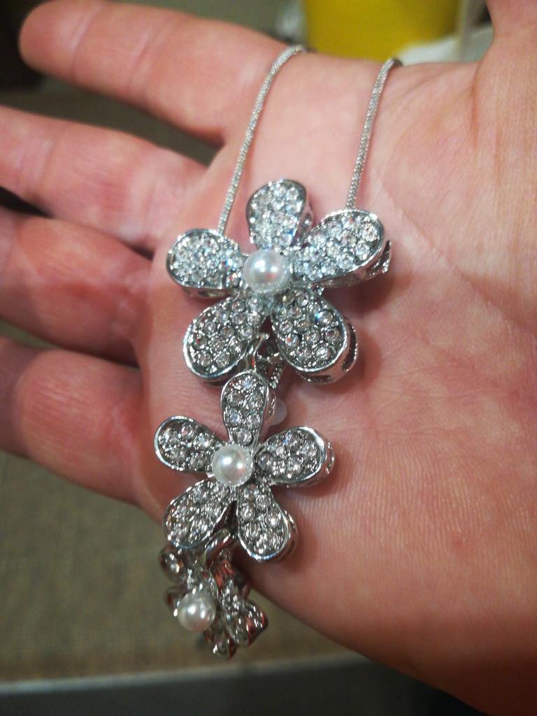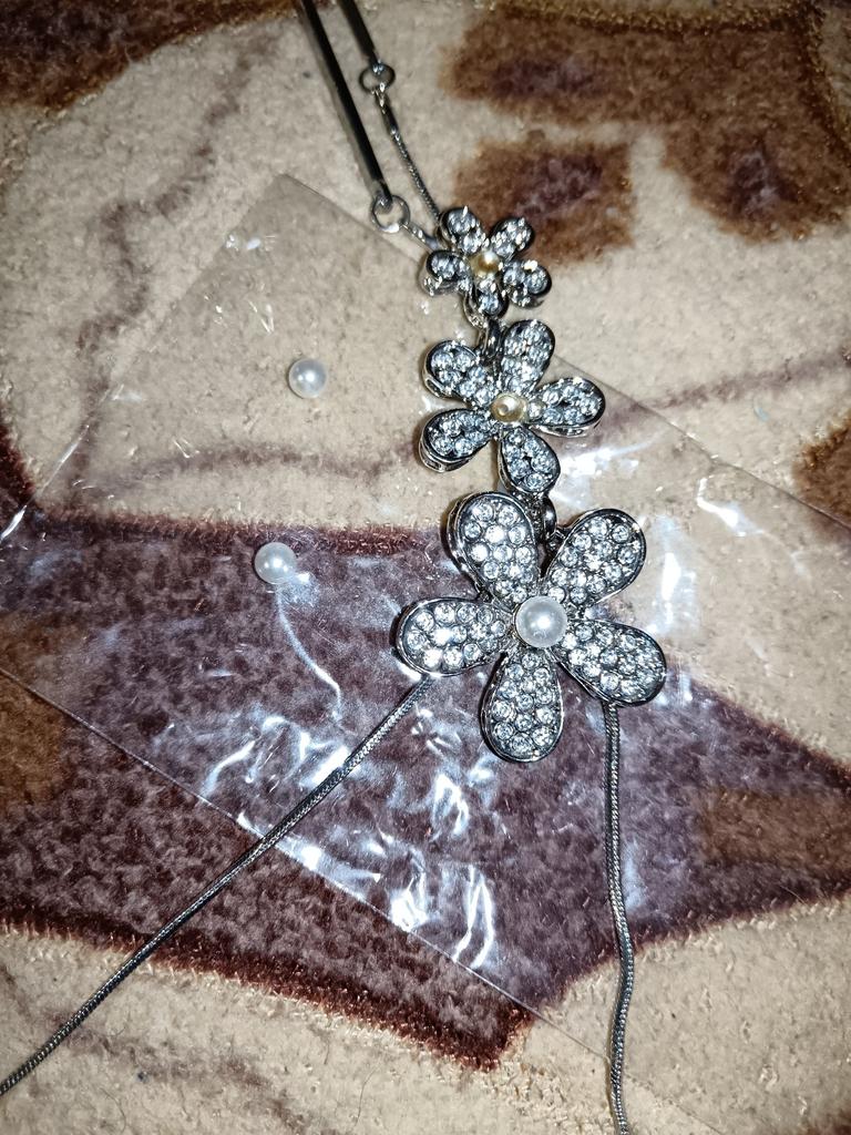 A very good necklace, the flowers move along the chain from top to bottom, it looks beautiful.