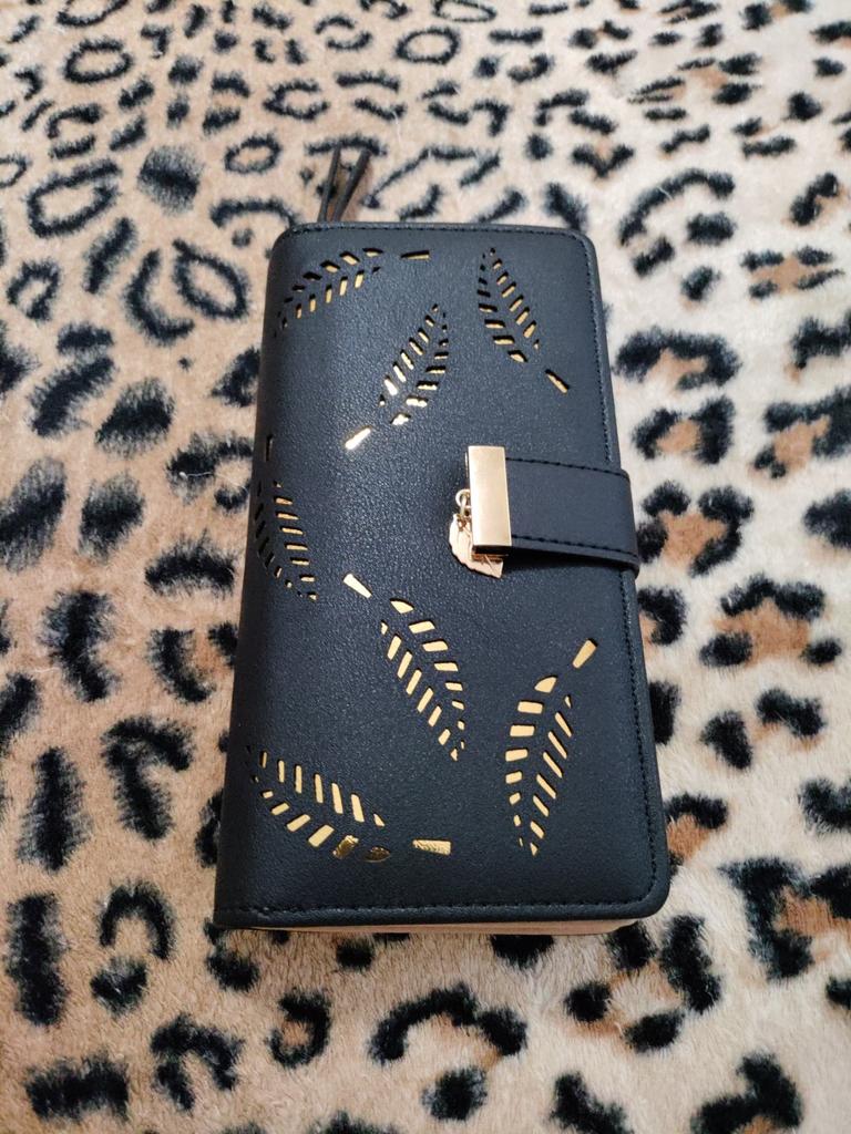 Women Hollow Wallets Leaf Long Clutch Zipper Purse Card Holder Leather Wallet Bolsas Carteras