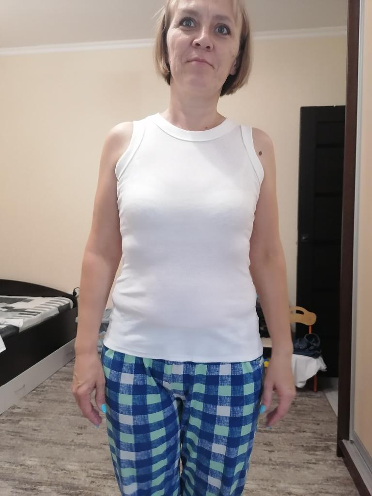 I usually wear S, but this tank top in size M fit me perfectly. It's 95% cotton, but it's very stretchy. Hide the bra straps. Very satisfied, I recommend!