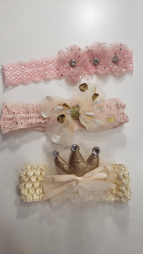3 Pcs/Set Baby Headband Princess Lace Crown Bows Kids Hairband For Girls Flower Turban Baby Hair Accessories