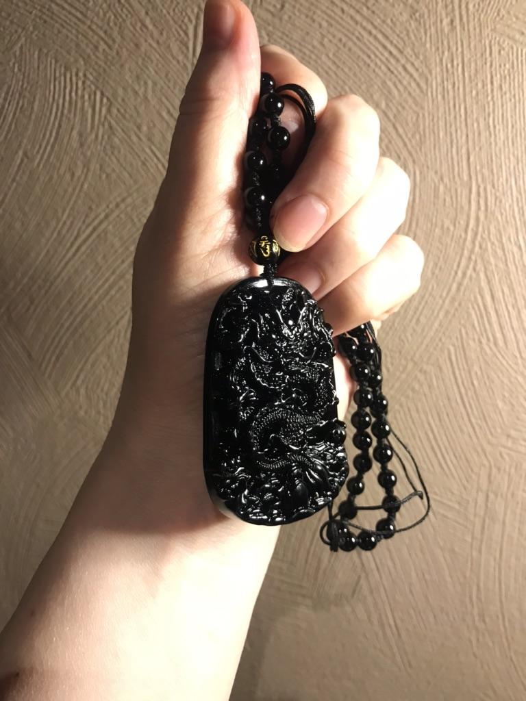Natural Black Obsidian Chinese Dragon Pendant Jade Necklace Jewelry Amulet Lucky Mens Gift