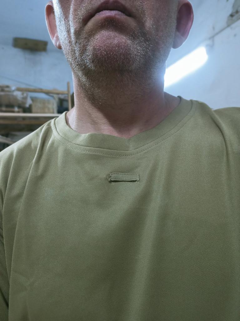 The loop that is sewn on the back side is sewn on the front side on the chest.