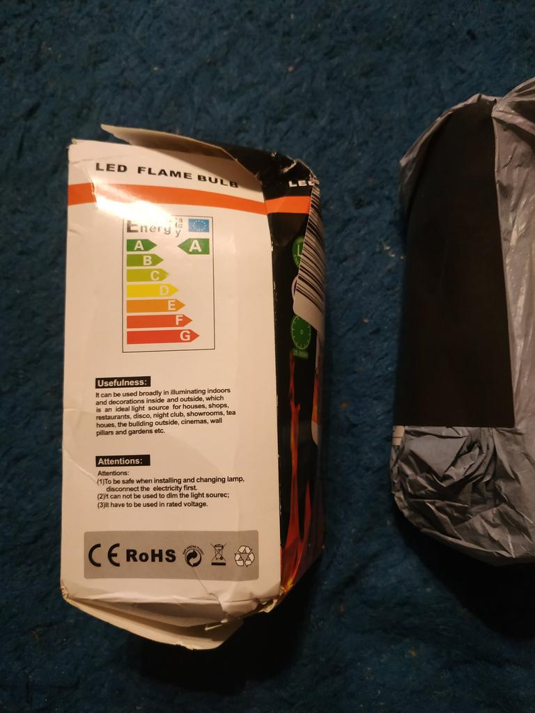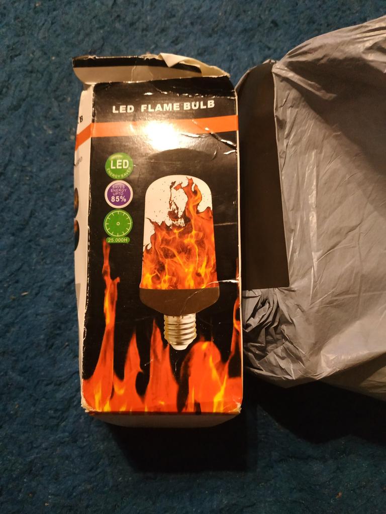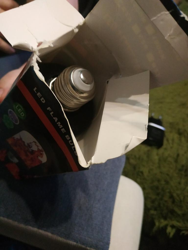 the box is open, the bulb is broken, it is on fire, the flame effect is weak..